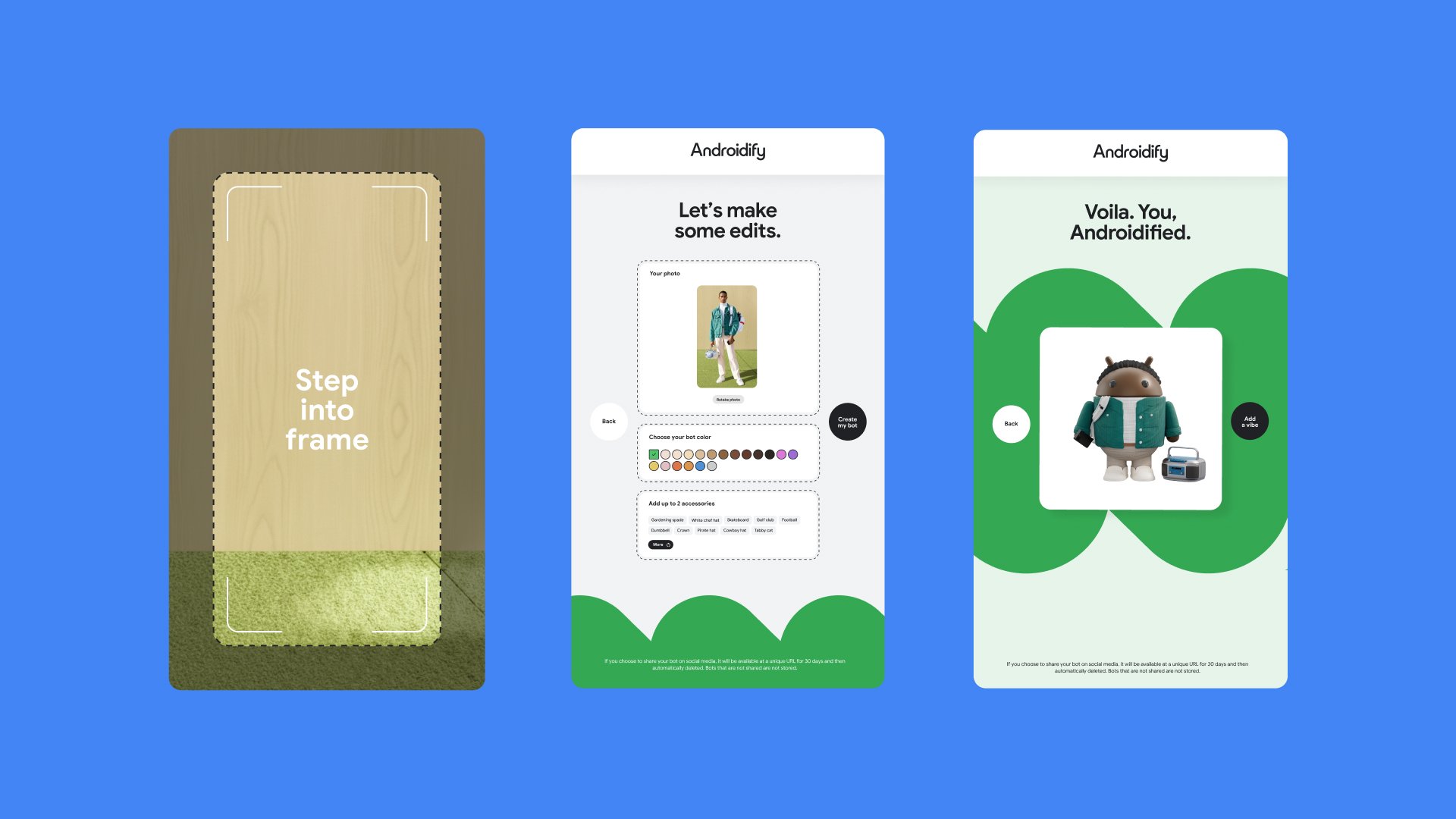 Unveiled at I/O 2025 and presented on the main stage in front of thousands of attendees, the interactive Androidify demo prompted event goers to grab accessories, stand in front of their own giant screen equipped with a camera, and customize their Android bots. After scanning a QR code, users received a fun sticker sheet takeaway with their own personal Android bot as well as the opportunity to download and share to social. Today, the demo continues to travel the globe, making appearances at 13 Google events across 8 countries with much fanfare worldwide.
