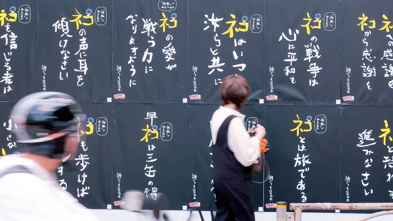 In Japanese, the symbols for ‘cat’ and ‘God’ are just one stroke apart. So we emulated religious-style posters around Tokyo, mysteriously heralding Cat God’s arrival.